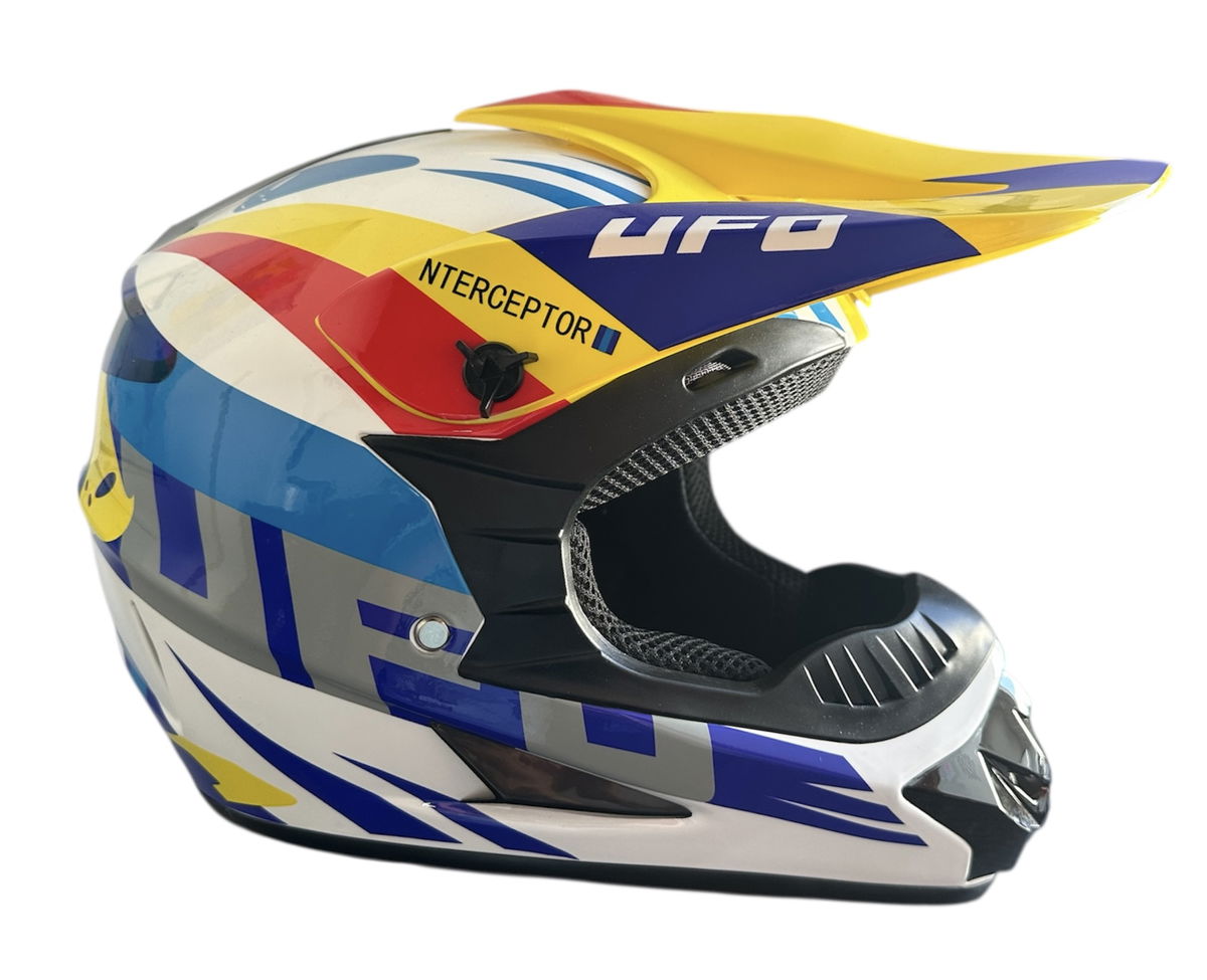 Casco Motocross UFO Amarillo Blanco Azul